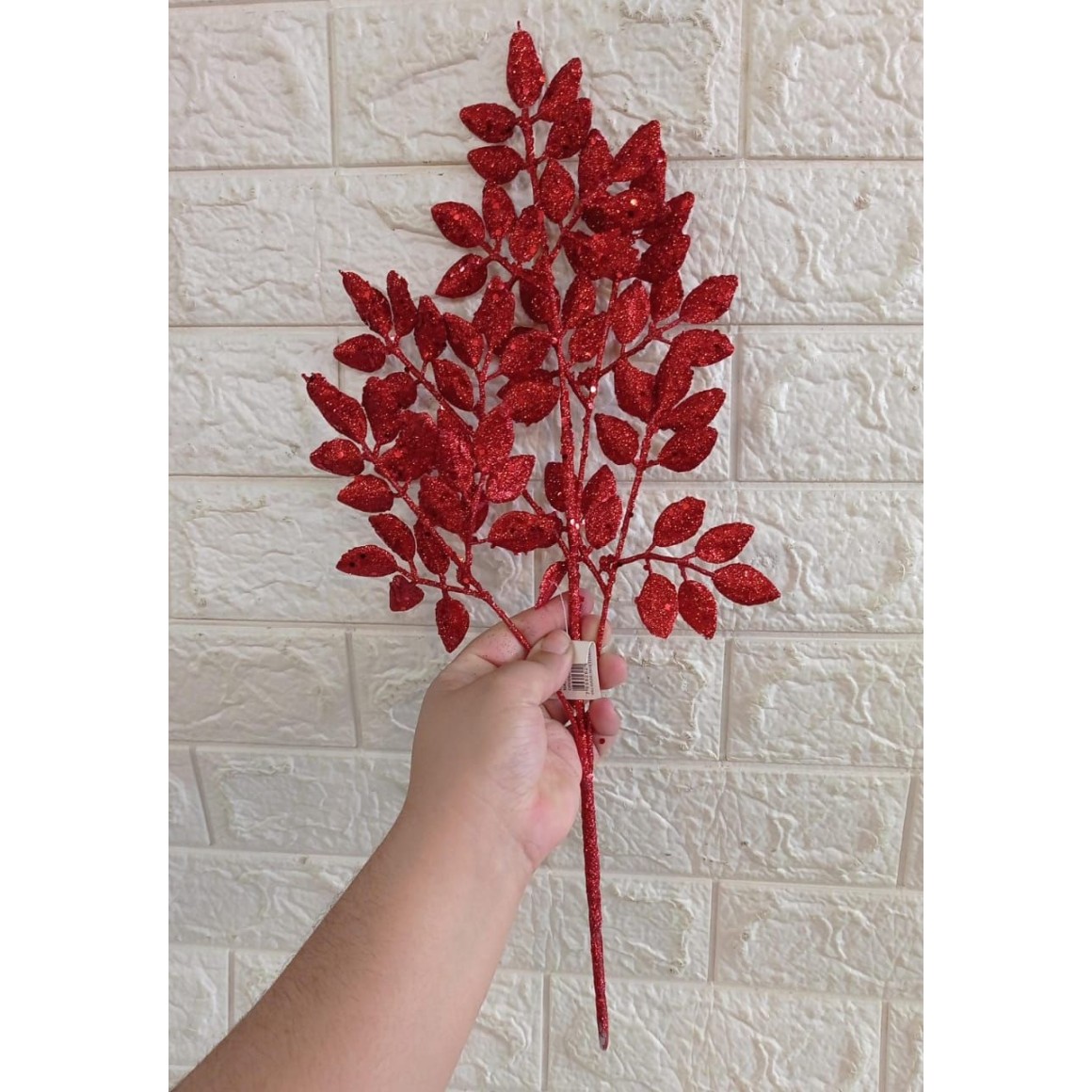 HASTE FG33 DE FOLHA C/3 GALHOS DOUR/VERM GLITER 48CM